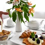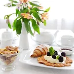 Morgens bietet das Hotel ein einfaches Frühstück an.